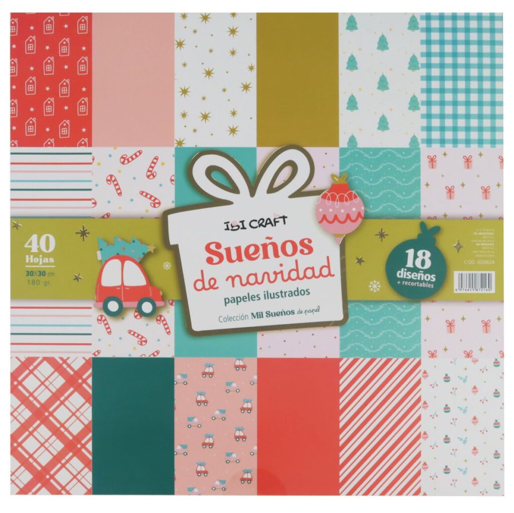 Bloc con 40 hojas de papeles ilustrados 30x30cms Ibi Craft Coleccion Sueños de Navidad