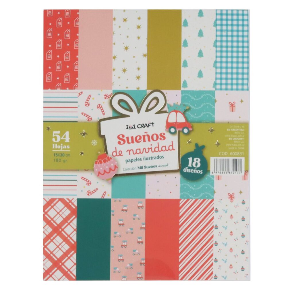 Bloc con 54 hojas de papeles ilustrados, en formato de 15×20 cms Ibi Craft Coleccion Sueños de Navidad