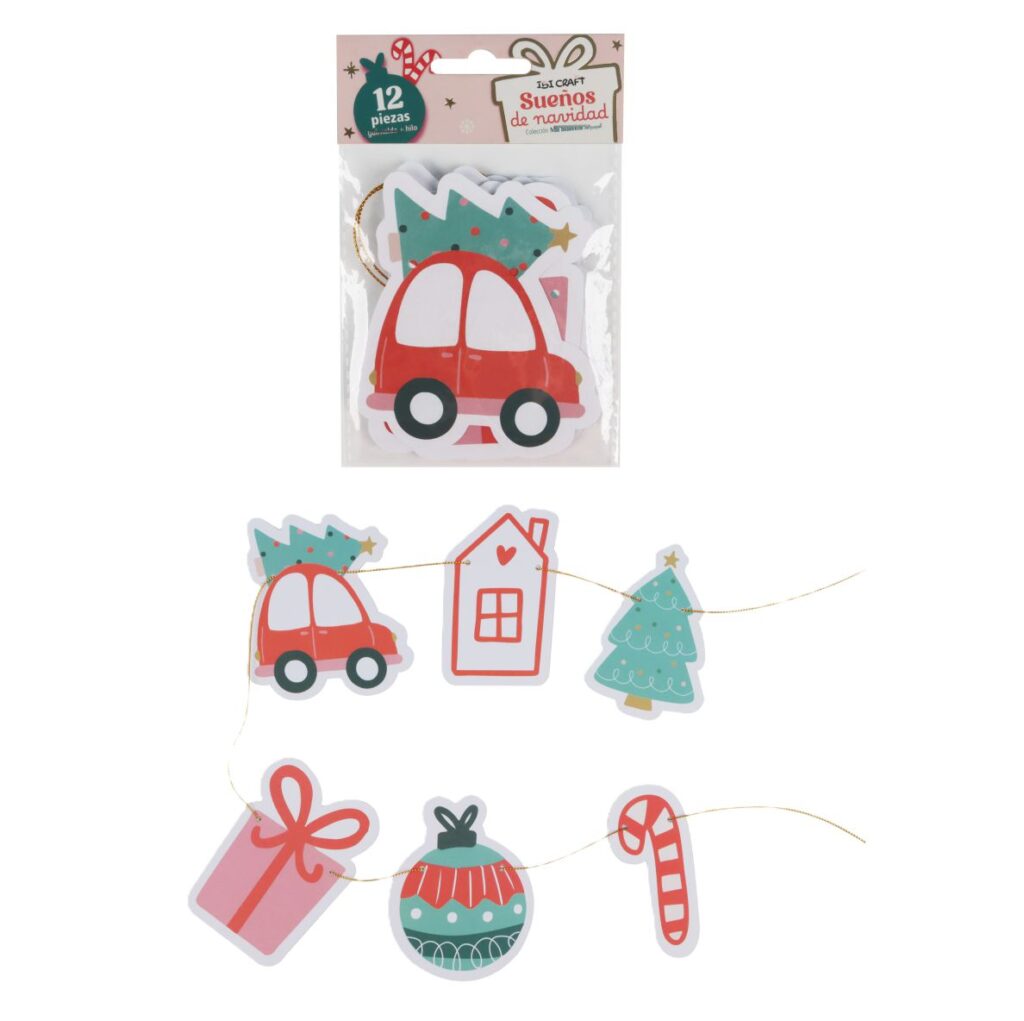 Set de 12 troqueles guirnalda en 6 diseños diferentes y 1m de hilo dorado Ibi Craft Colección Sueños de Navidad