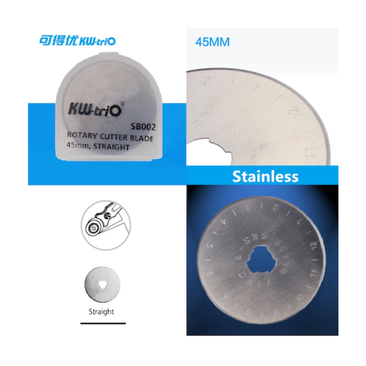 Repuesto de 3 cuchillas corte recto para Cortante Rotativo kw-trio 45mm